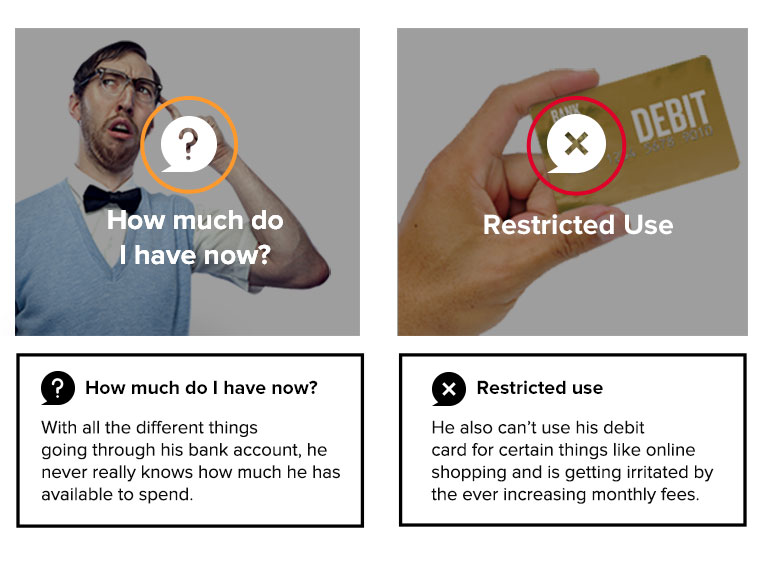 Meet Jack- the overspender. Jack’s like a lot of us. He loves the convenience of his credit card but ends up overspending every month. He’s tried budgeting but can’t seem to stick to it.