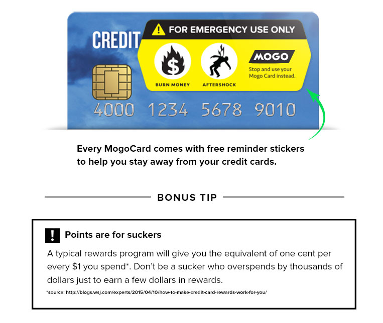 Credit cards make it too easy to overspend, so only use them in case of emergency. You can start using this tip before your MogoCard arrives. Think before you borrow.