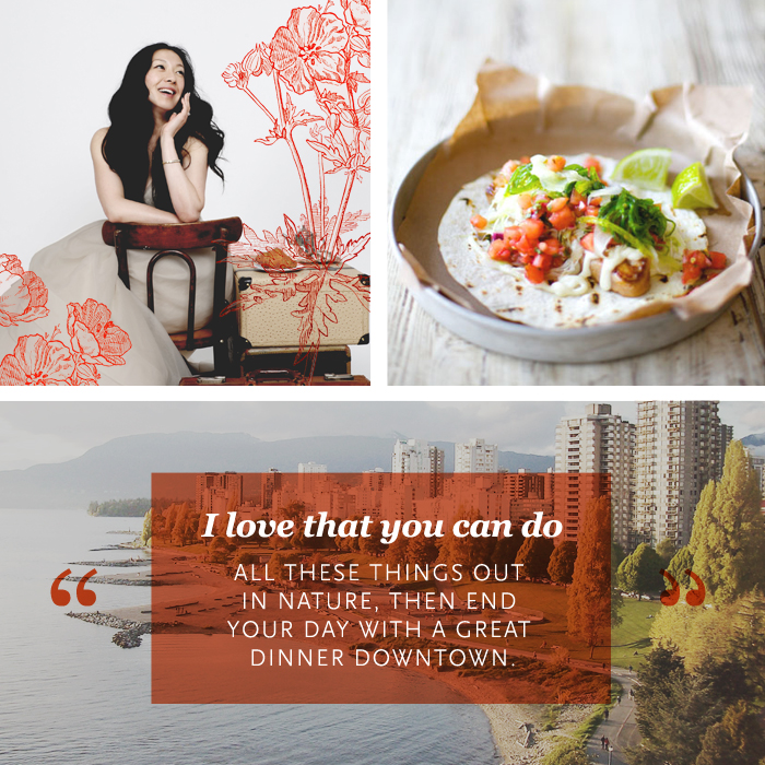 Recently I’ve become more interested in the outdoors. I’ve started hitting the hiking trails and I’m kind of blown away by the beauty. I went hiking at Joffre Lake and have done lots of day hikes, and visited Tofino. I love that you can do all these things out in nature, then end your day with a great dinner downtown.