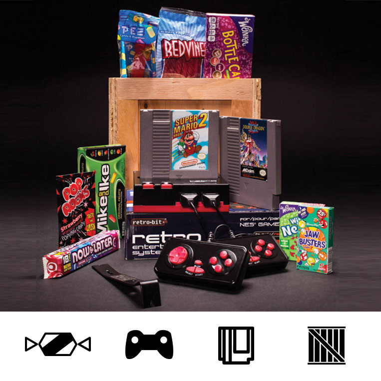 The Retro Gamer Crate comes to our modern-day rescue and takes us back to the good old days with all the right necessities: a Retro-Bit NES Console (easy-to-operate controllers included), 2 classic Nintendo games (randomly selected for your pleasure), and a full suite of sugar intoxication to keep you focused on the duck hunt – or whatever game you were so lucky to receive.