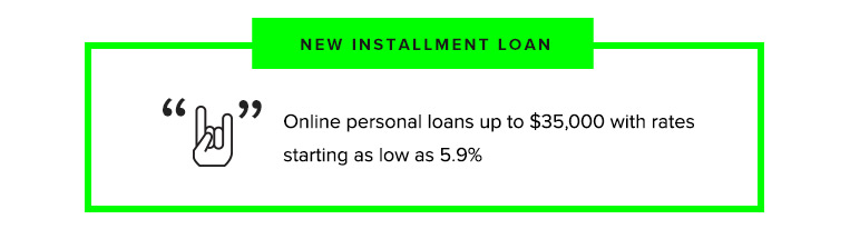 Now without ever having to visit a branch or wait in line, you can apply and see if you qualify for a personal loan up to $35,000 with rates starting as low as 5.9% (up to 45.9%). On average it takes 3 minutes to complete our simple application form AND it will not impact your credit score!
