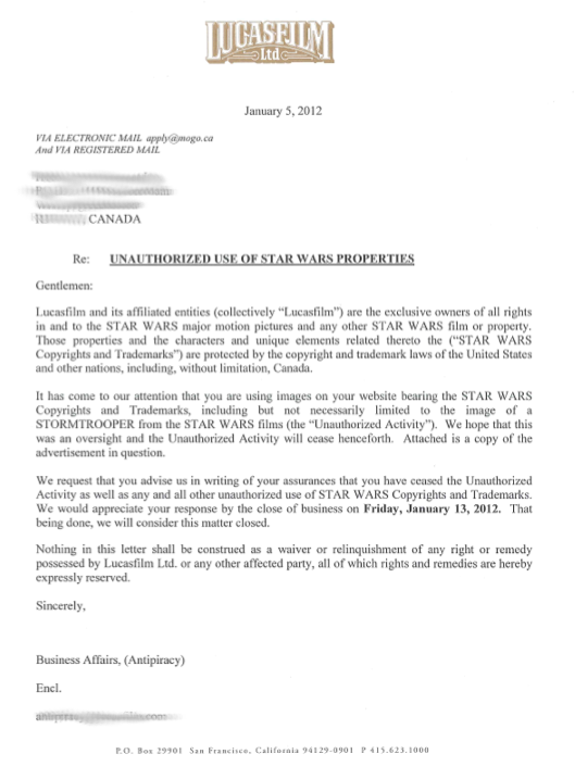 The other day, Mogo got an interesting letter from a pretty big player in the world of entertainment: Lucasfilm.