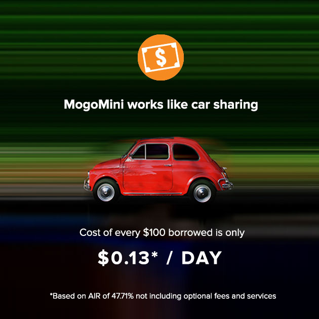 We thought there had to be a better way, and that’s how we came up with MogoMini. Taking inspiration from the car sharing movement, where companies like Zip Car and Car2Go now make cars conveniently available to rent by the hour and/or day, we thought that same idea could work for credit.