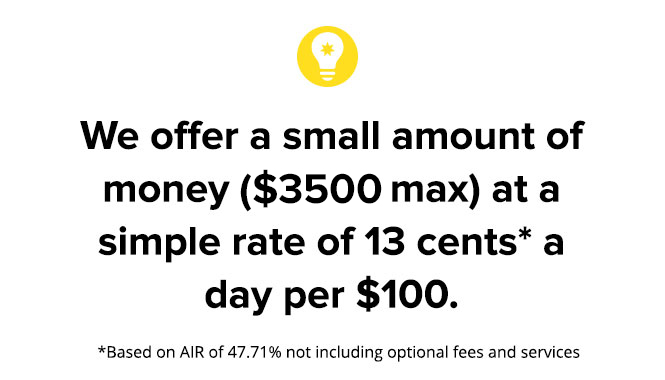 Instead of giving people access to a big credit limit like credit cards where you can easily find yourself in so much debt that it can take decades to pay off, what about giving people access to a small amount of money (up to $3500) and like car sharing come up with a daily rate of $0.13* per $100 that makes it affordable to borrow money by the day. And, you can get pre-approved without it impacting your credit score!