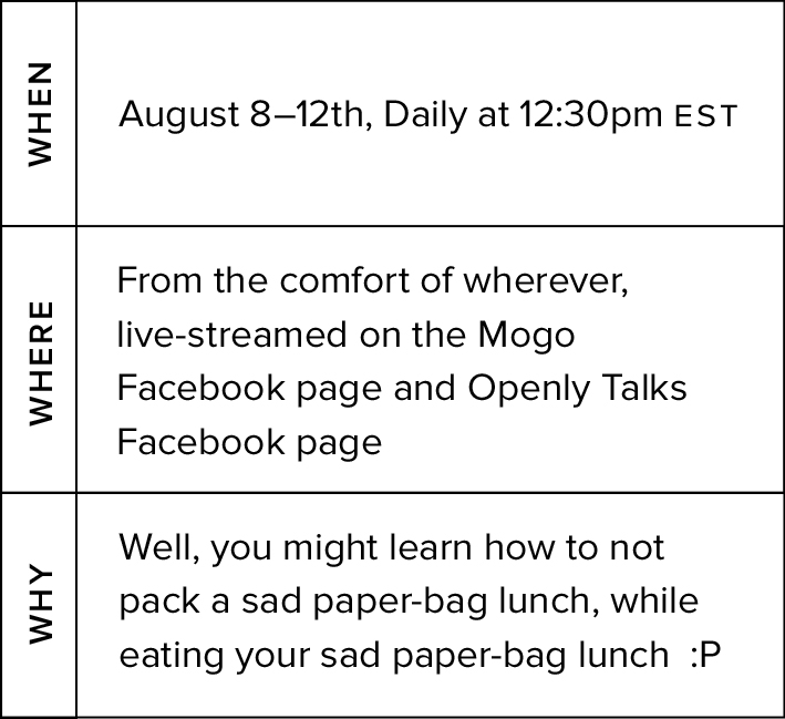 From August 8th to 12th, our Mogo x Underground Chef Co. Speaker Series will be coming at ya live from the MogoLounge. In partnership with Openly Talks, we’ll be streaming interviews with the best-of-the-best in Toronto’s culinary scene. Get ready for a raw, uncut experience with the baddest in the biz.