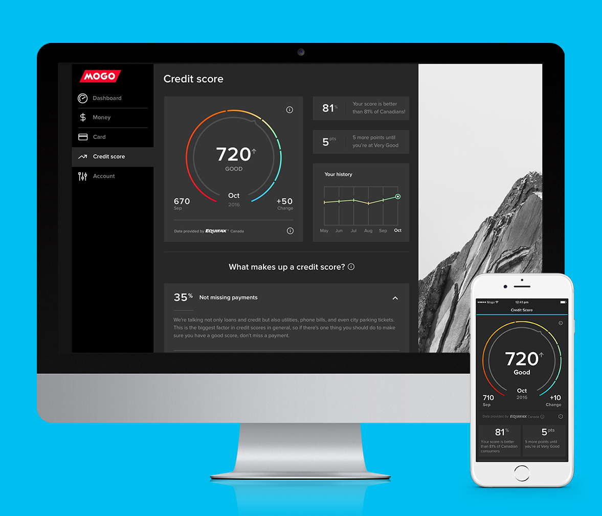 For those of you who may have checked your credit score somewhere else, you may notice a difference in the score you were given vs. the one we give you. Your credit score changes every day and credit bureaus each have different credit score reports as well. Mogo has chosen to partner with Equifax the largest bureau in Canada and the score we are showing is technically known as ERS2 and includes mortgage information. The benefit of monitoring your score with Mogo is that the score we show (ERS2) is one of the main scores that many lenders consider when looking to grant you loans including mortgages.