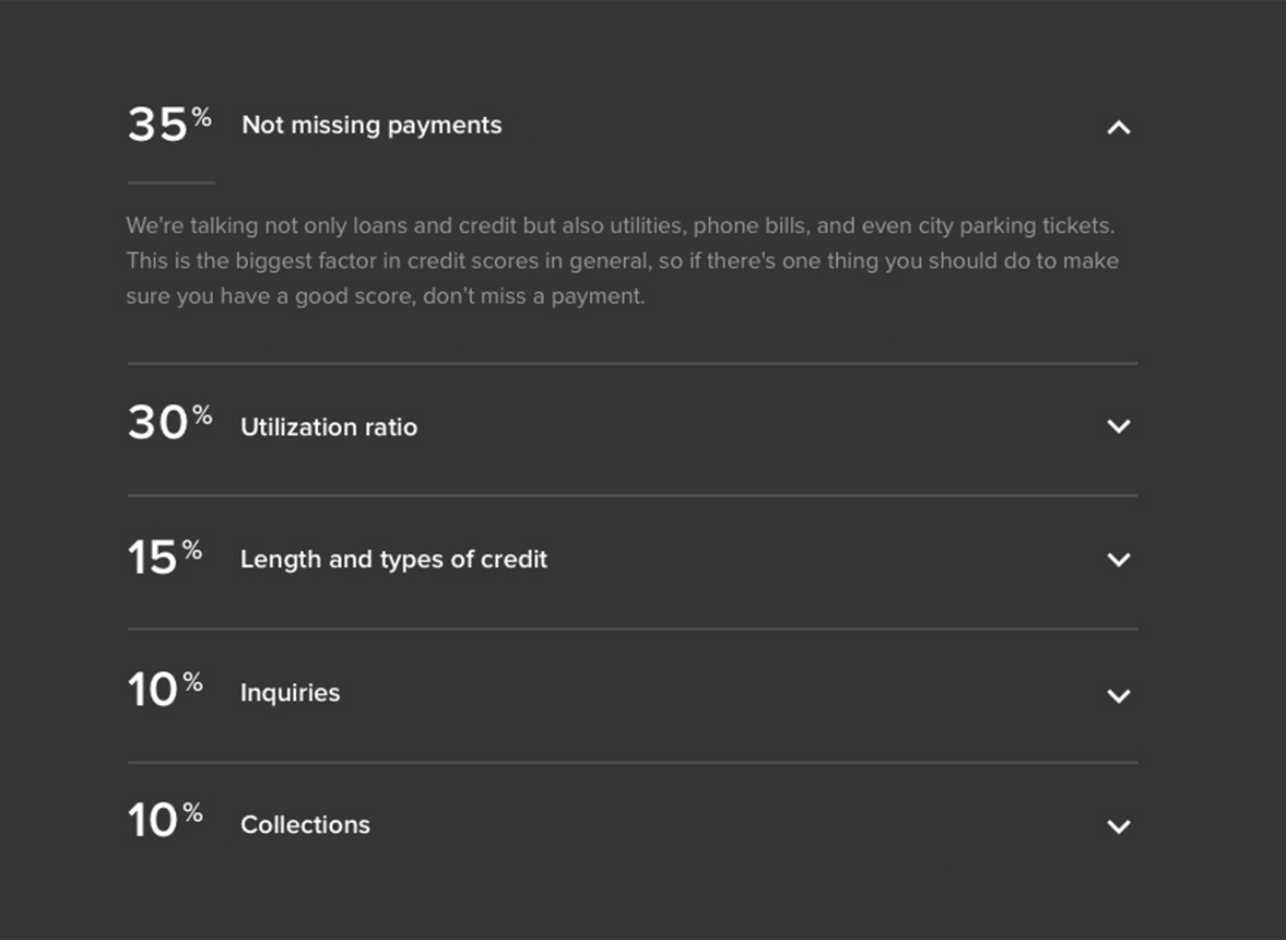 Ever wondered how your credit score is calculated? Credit scores are dynamic, and are based on a secret credit bureau algorithm made up of different aspects of your credit history. But don’t worry, we can give you a rough estimate of the factors that make it up. This can help you figure out where you can improve (and where you’re kicking ass).